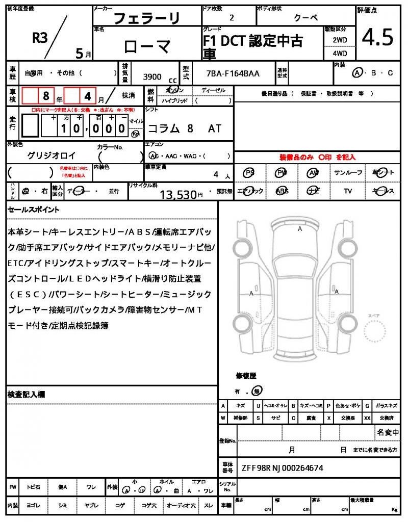 | VIN/Serial No. | ZFF98RNJ000264674 |