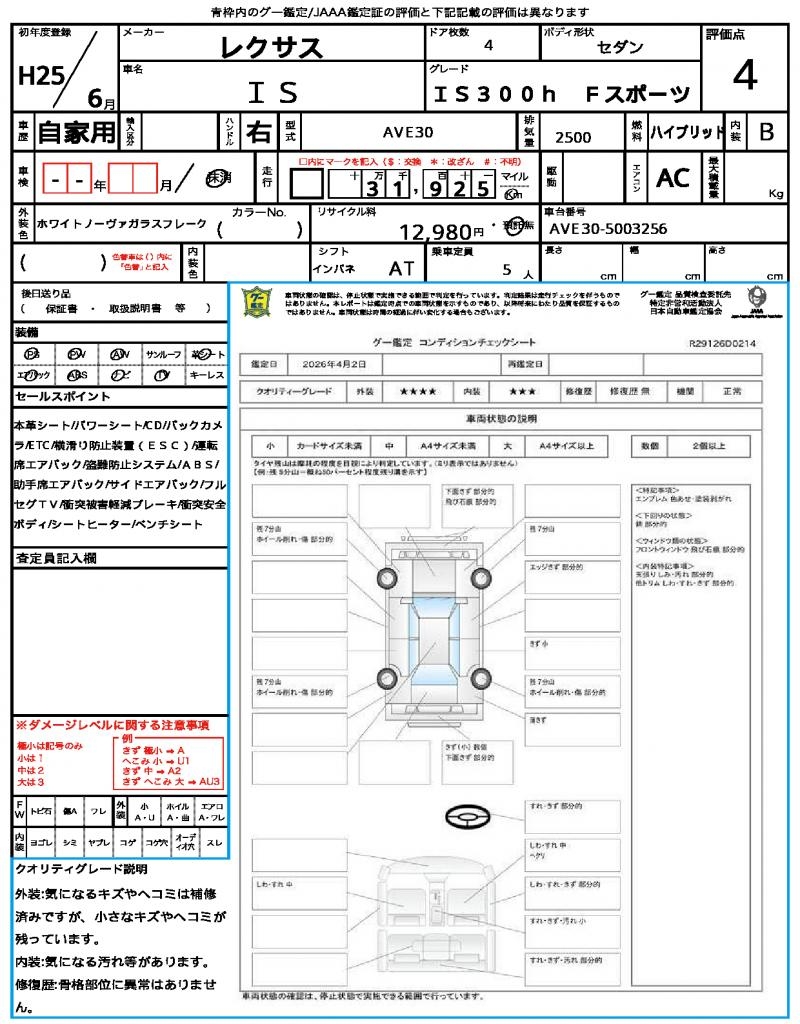 | VIN/Serial No. | AVE30-5003256 |