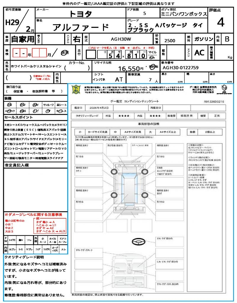| VIN/Serial No. | AGH30-0122759 |