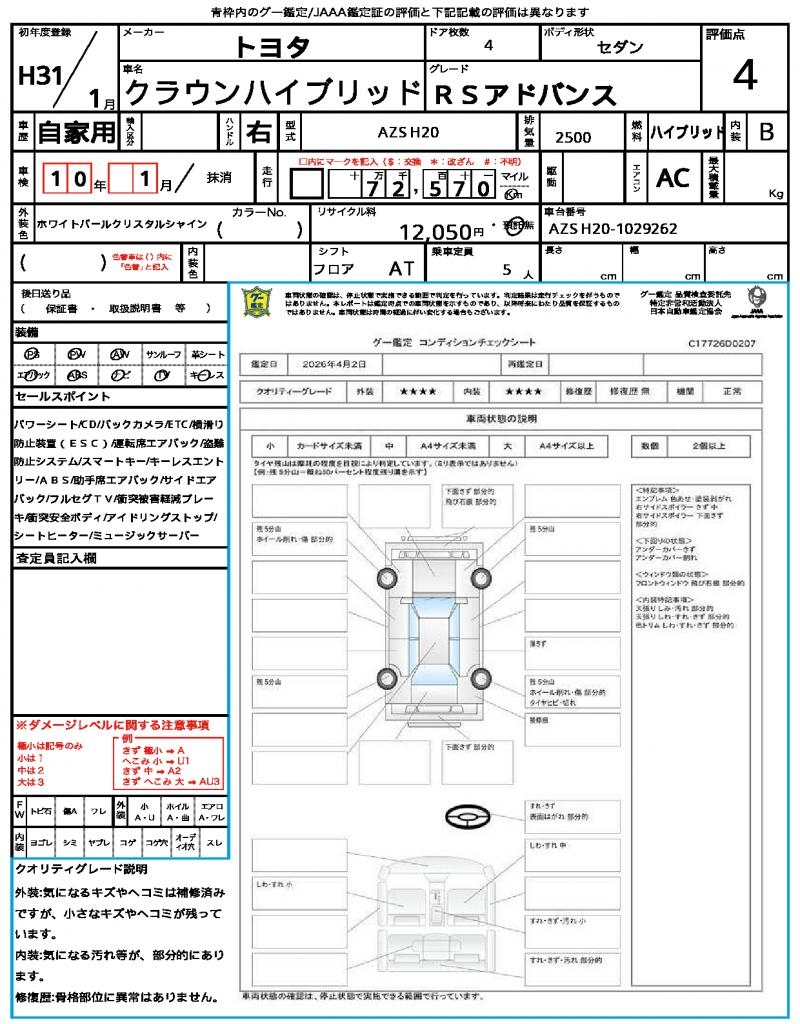 | VIN/Serial No. | AZSH20-1029262 |