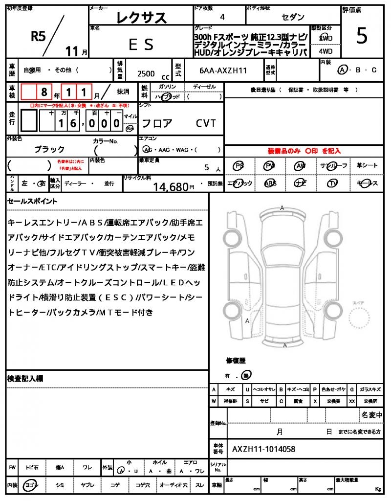 | VIN/Serial No. | AXZH11-1014058 |