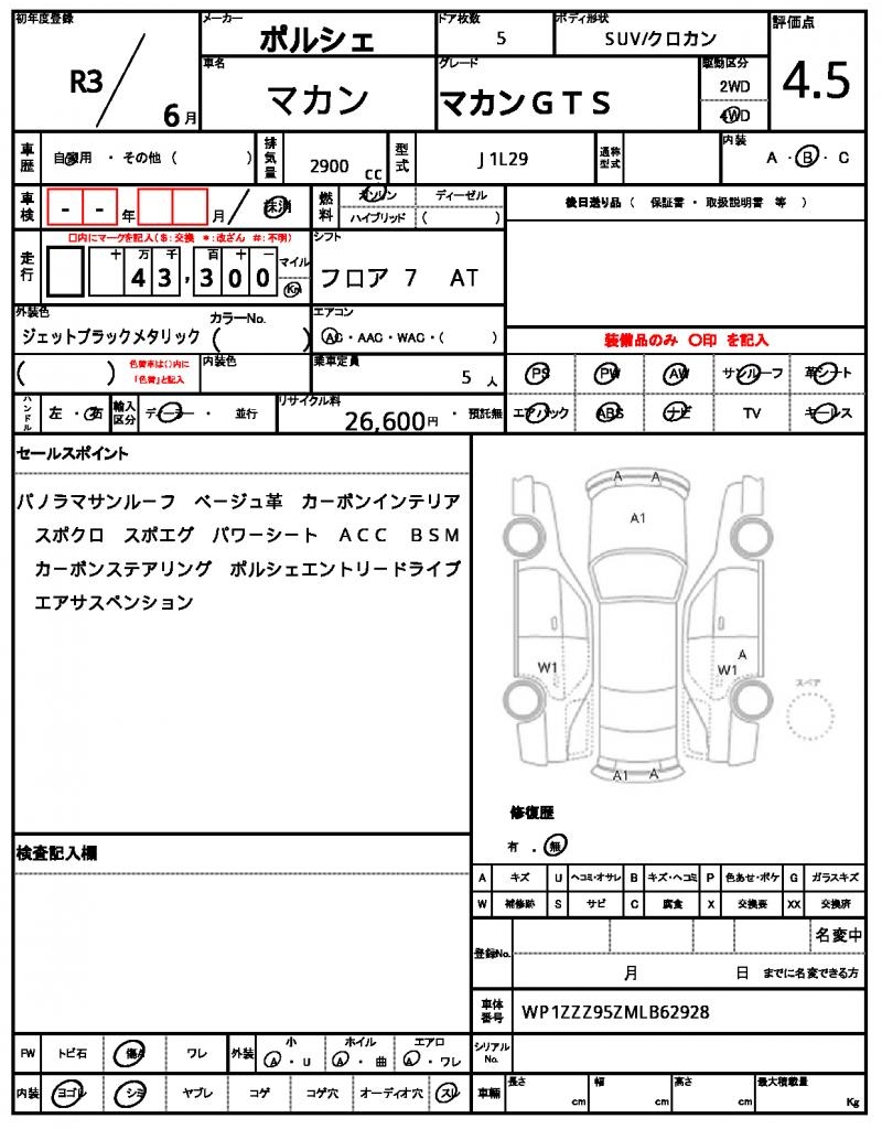 | VIN/Serial No. | WP1ZZZ95ZMLB62928 |