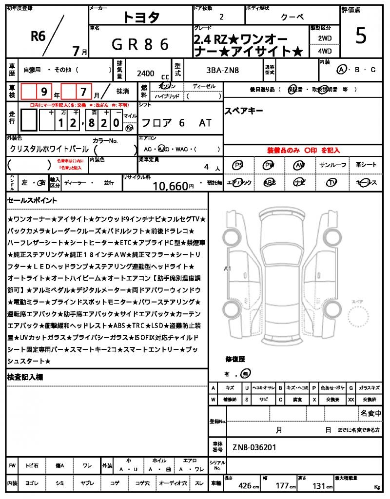 | Model code | 3BA-ZN8 |