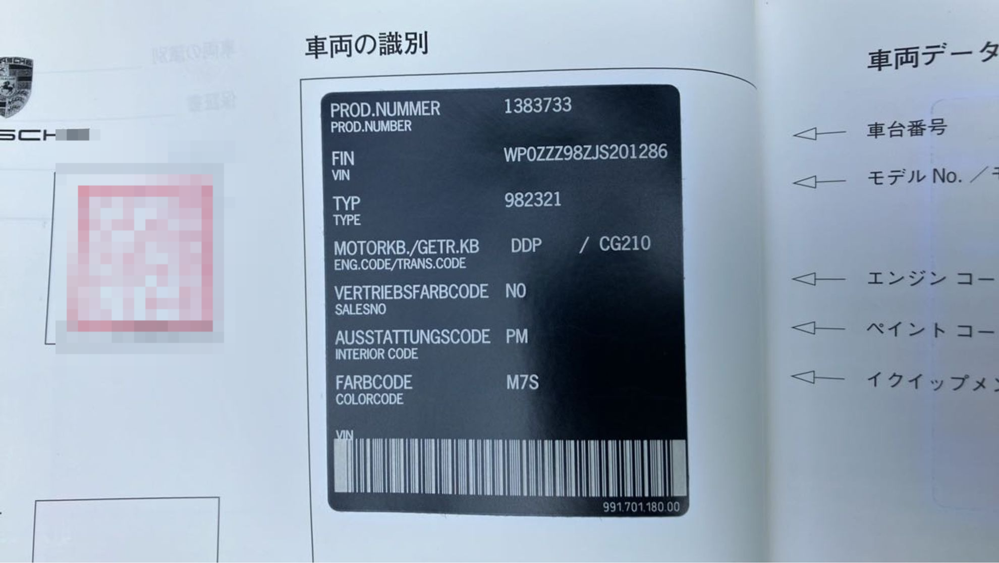 | VIN/Serial No. | WP0ZZZ98ZJS201286 |
