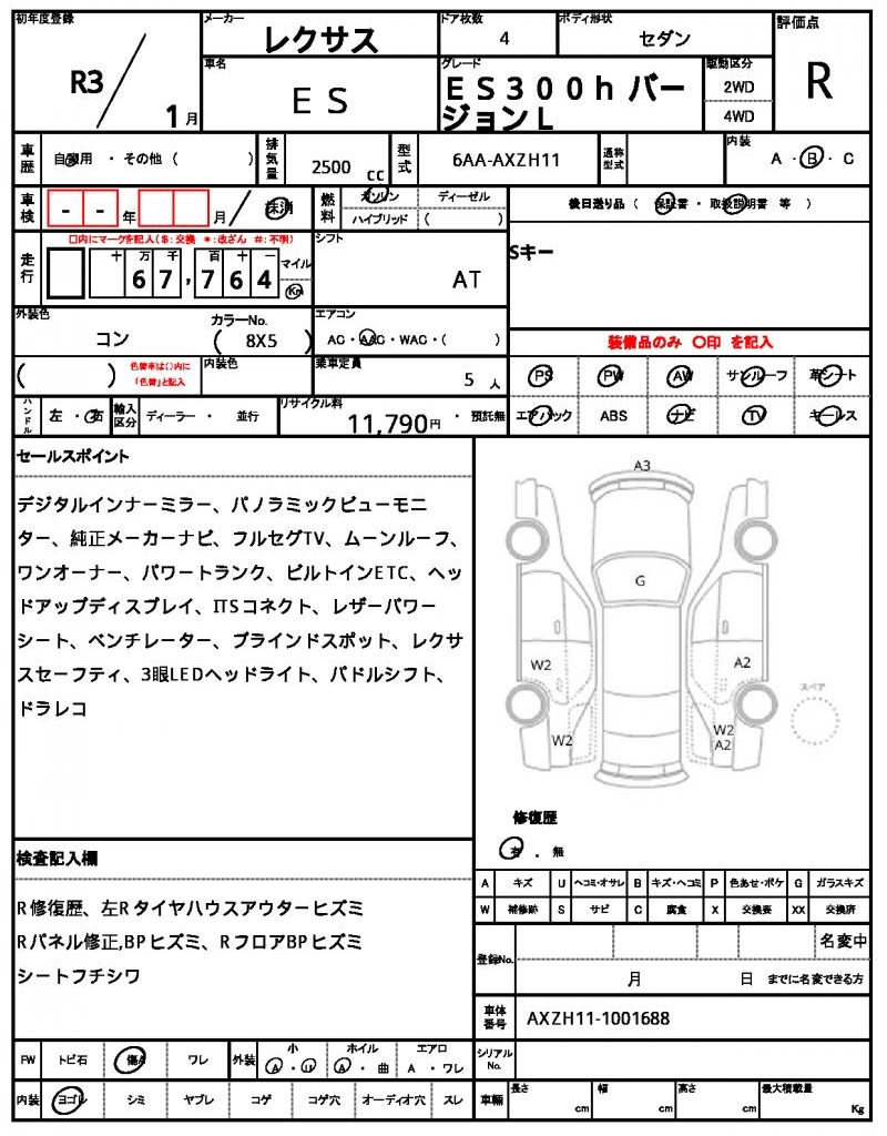 VIN/Serial No. AXZH11-1001688