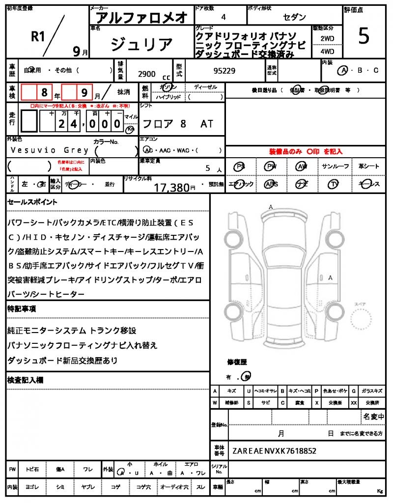 | VIN/Serial No. | ZAREAENVXK7618852 |