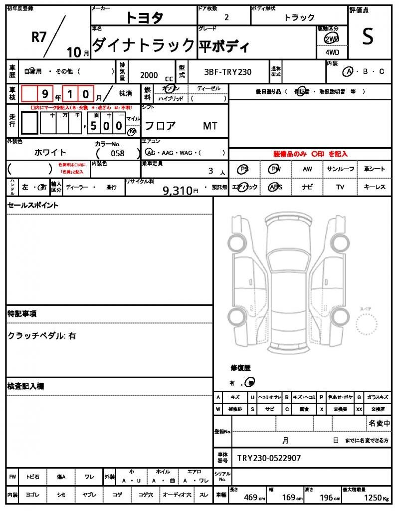 | VIN/Serial No. | TRY230-0522907 |