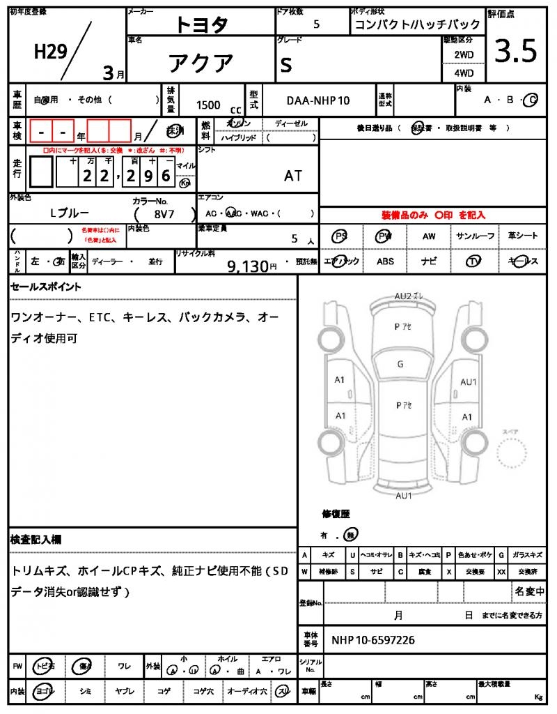 | VIN/Serial No. | NHP10-6597226 |