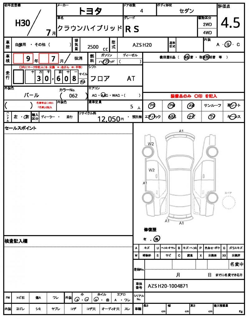 | VIN/Serial No. | AZSH20-1004871 |