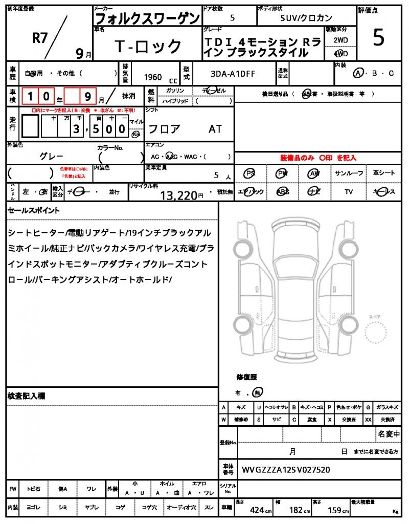 | VIN/Serial No. | WVGZZZA12SV027520 |