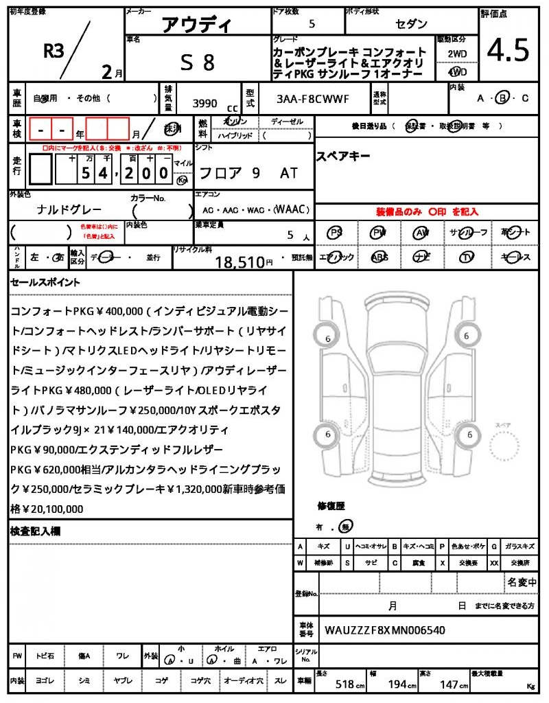 VIN/Serial No. WAUZZZF8XMN006540