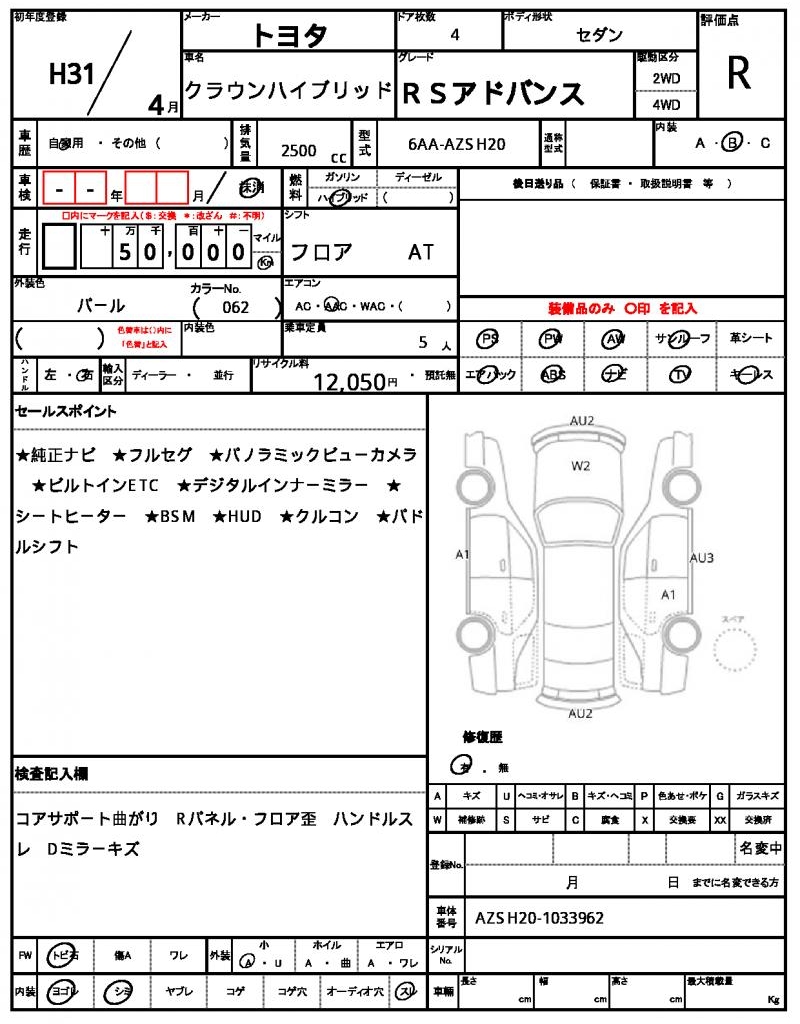 | VIN/Serial No. | AZSH20-1033962 |