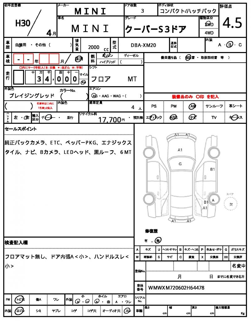 | VIN/Serial No. | WMWXM720602H64478 |