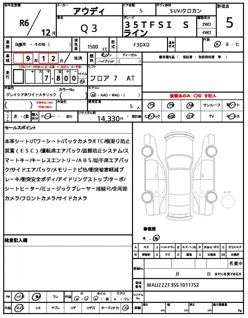| VIN/Serial No. | WAUZZZF35S1011752 |