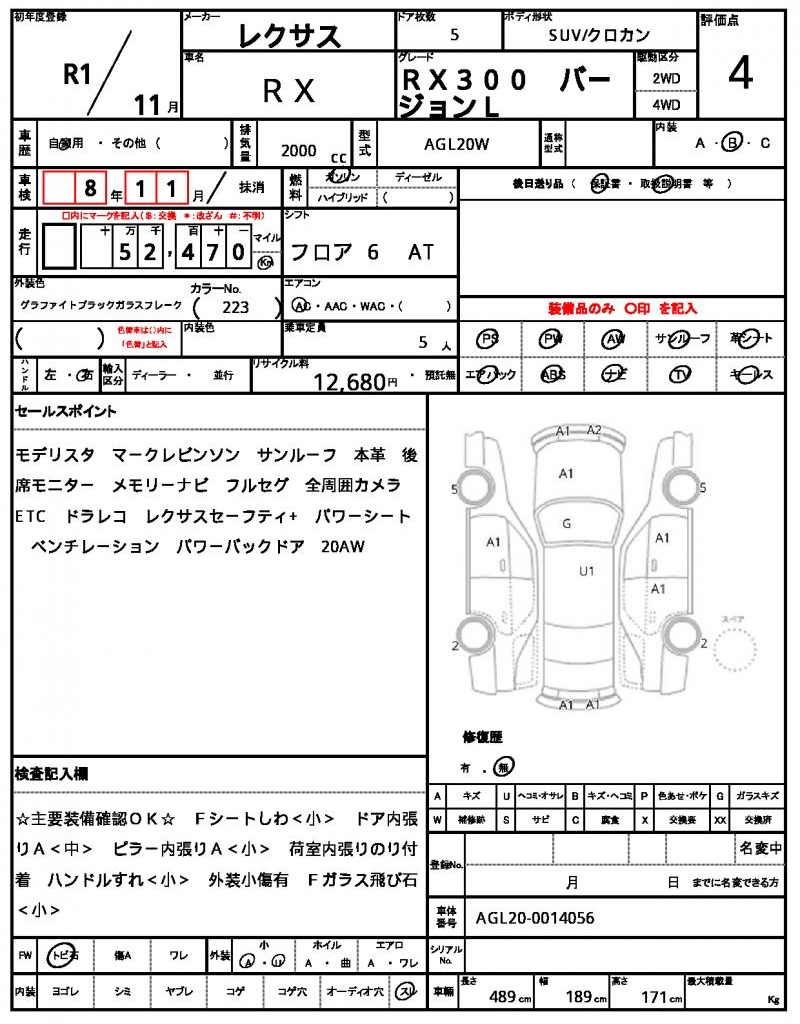 VIN/Serial No. AGL20-0014056