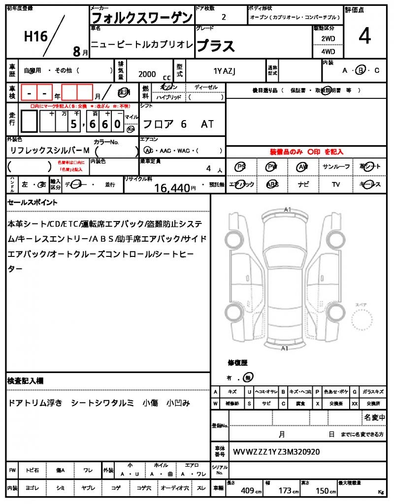| VIN/Serial No. | WVWZZZ1YZ3M320920 |