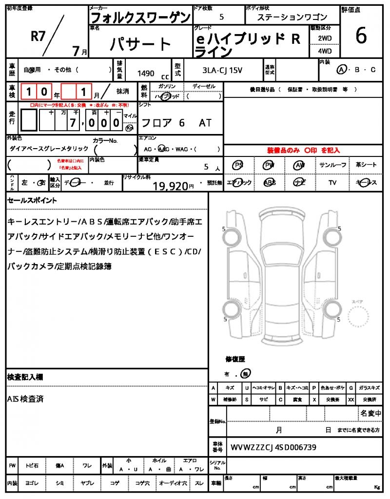 | VIN/Serial No. | WVWZZZCJ4SD006739 |
