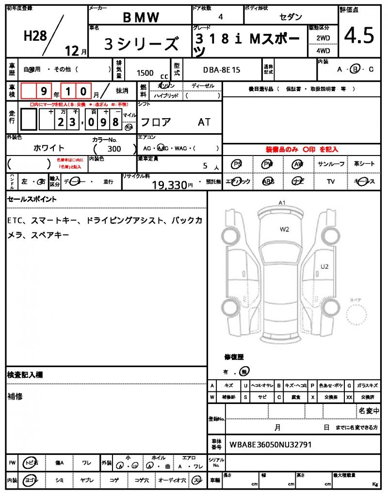 | VIN/Serial No. | WBA8E36050NU32791 |