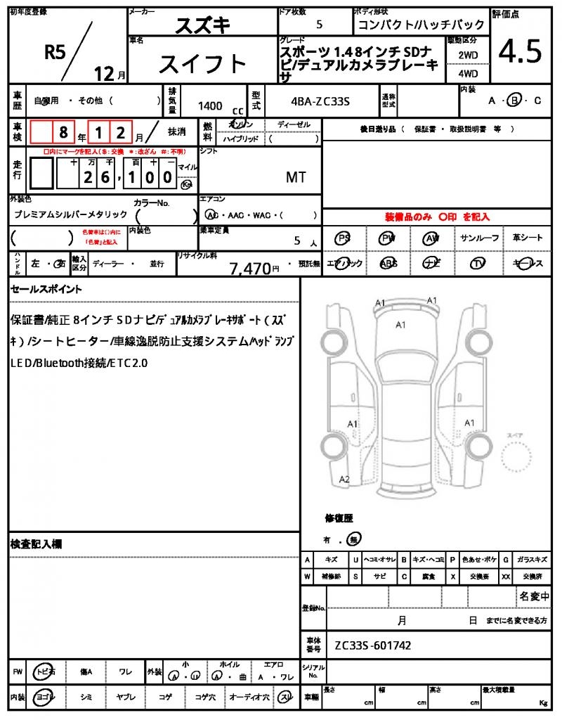 | VIN/Serial No. | ZC33S-601742 |