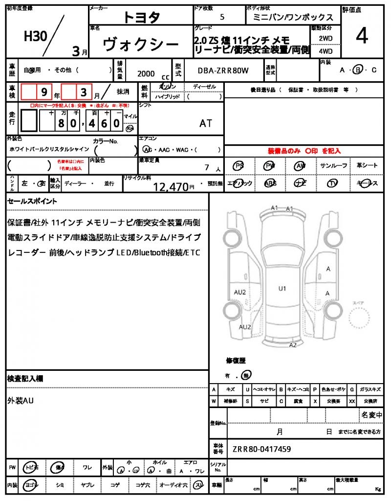Model code DBA-ZRR80W