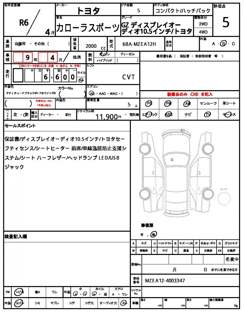 | Model code | 6BA-MZEA12H |