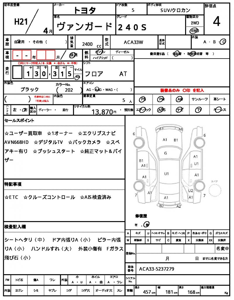 | VIN/Serial No. | ACA33-5237279 |