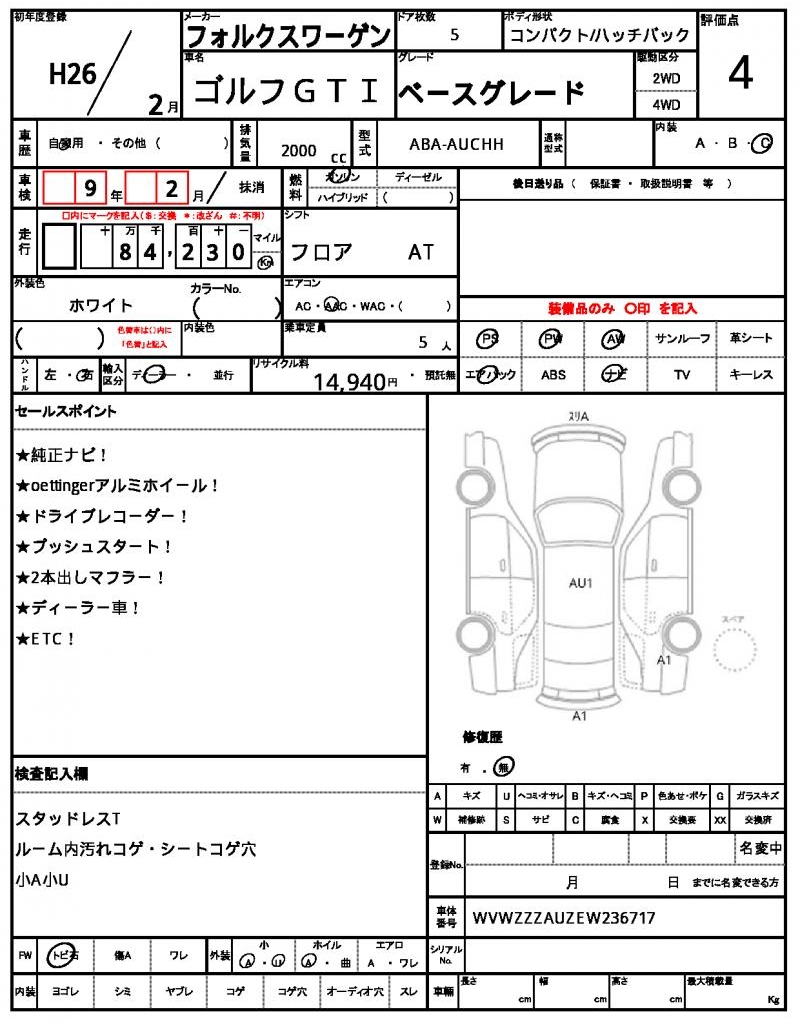 | VIN/Serial No. | WVWZZZAUZEW236717 |