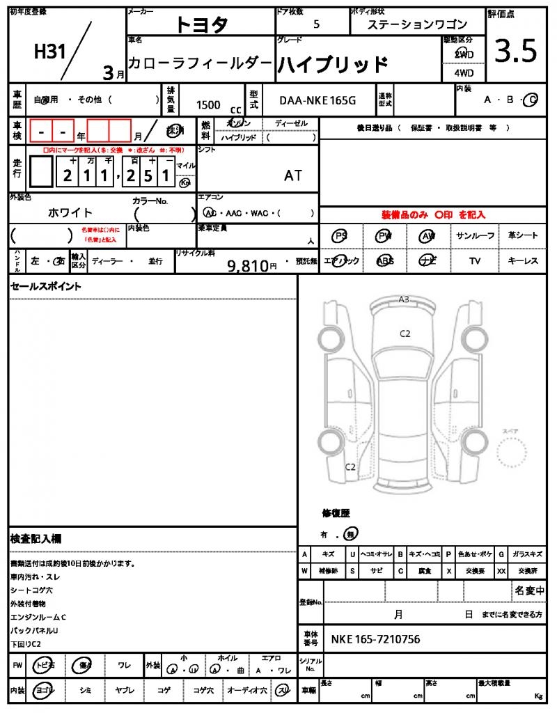 | VIN/Serial No. | NKE165-7210756 |