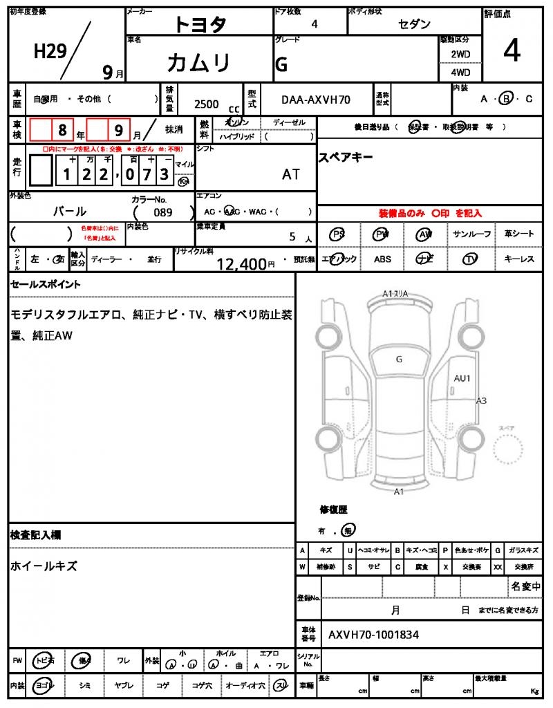 | VIN/Serial No. | AXVH70-1001834 |