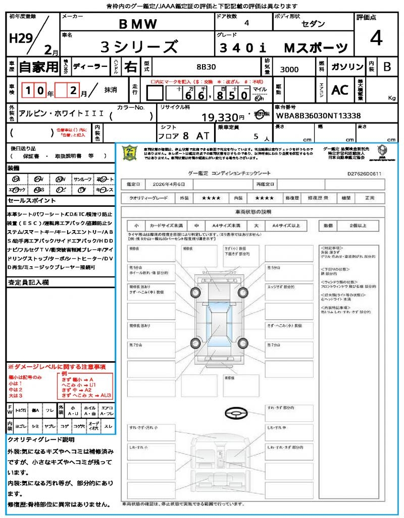 VIN/Serial No. WBA8B36030NT13338