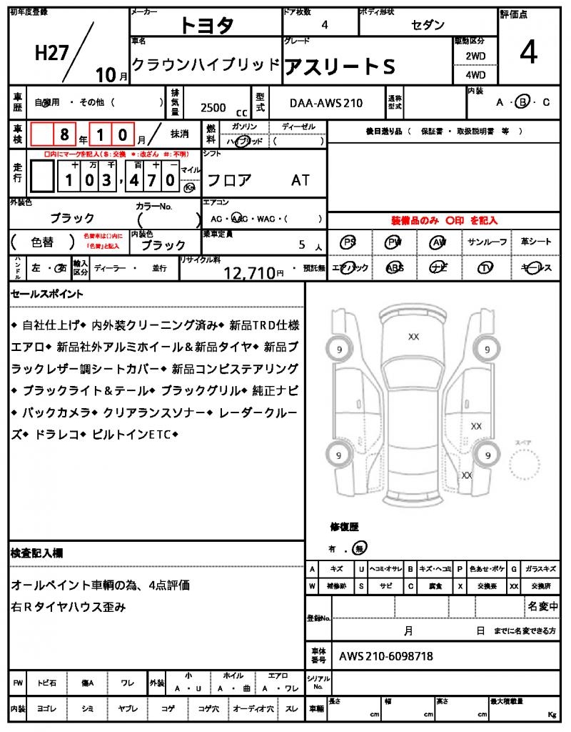 | VIN/Serial No. | AWS210-6098718 |