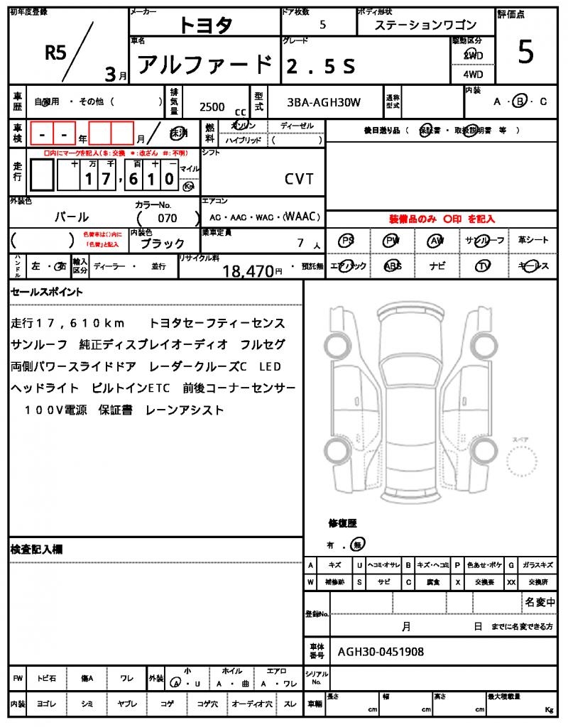 | VIN/Serial No. | AGH30-0451908 |