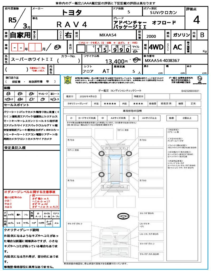 | VIN/Serial No. | MXAA54-4038367 |