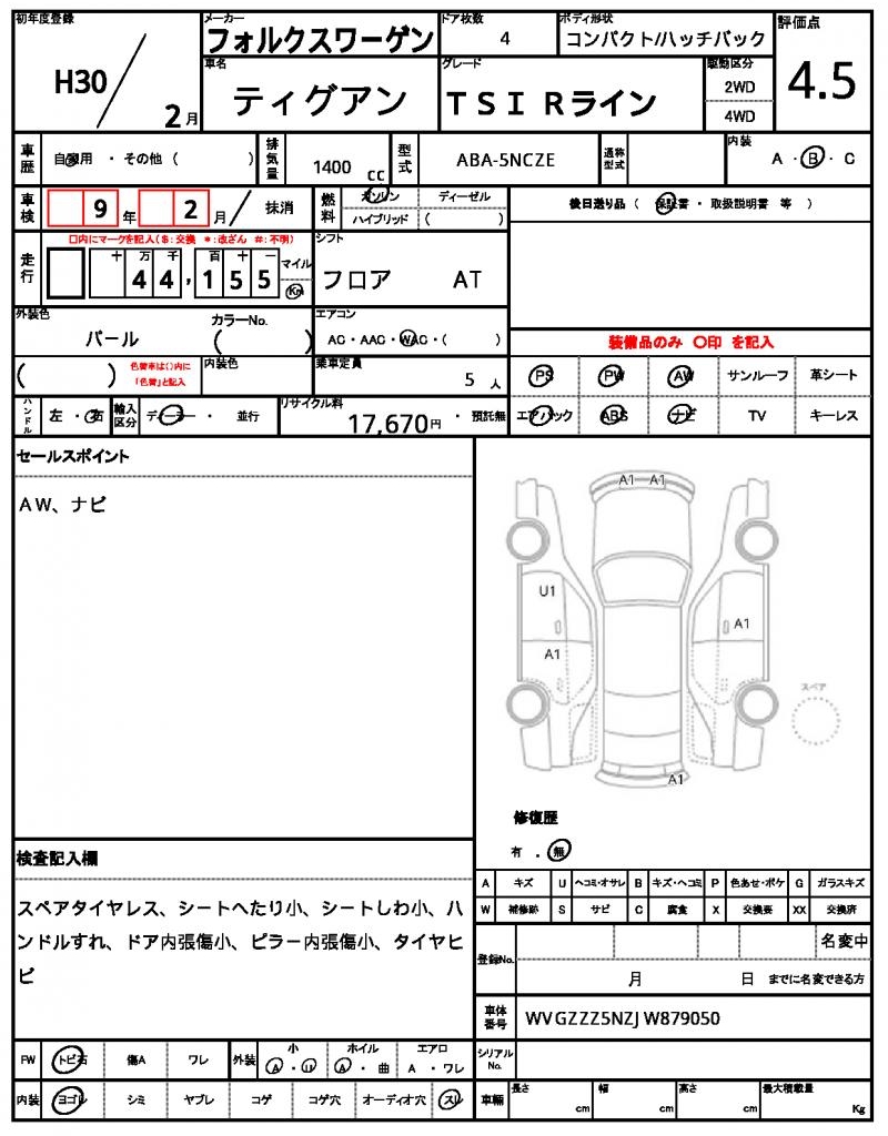 | VIN/Serial No. | WVGZZZ5NZJW879050 |