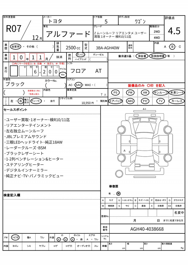 | VIN/Serial No. | AGH40-4038668 |