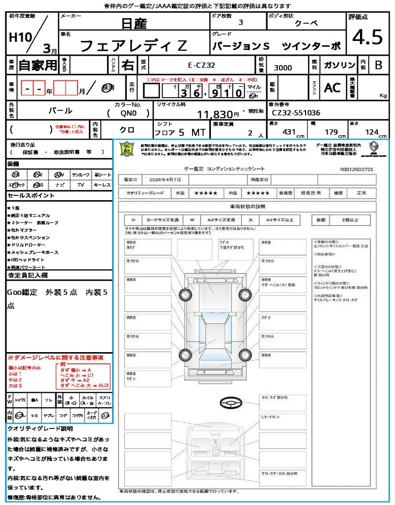 | VIN/Serial No. | CZ32-551036 |