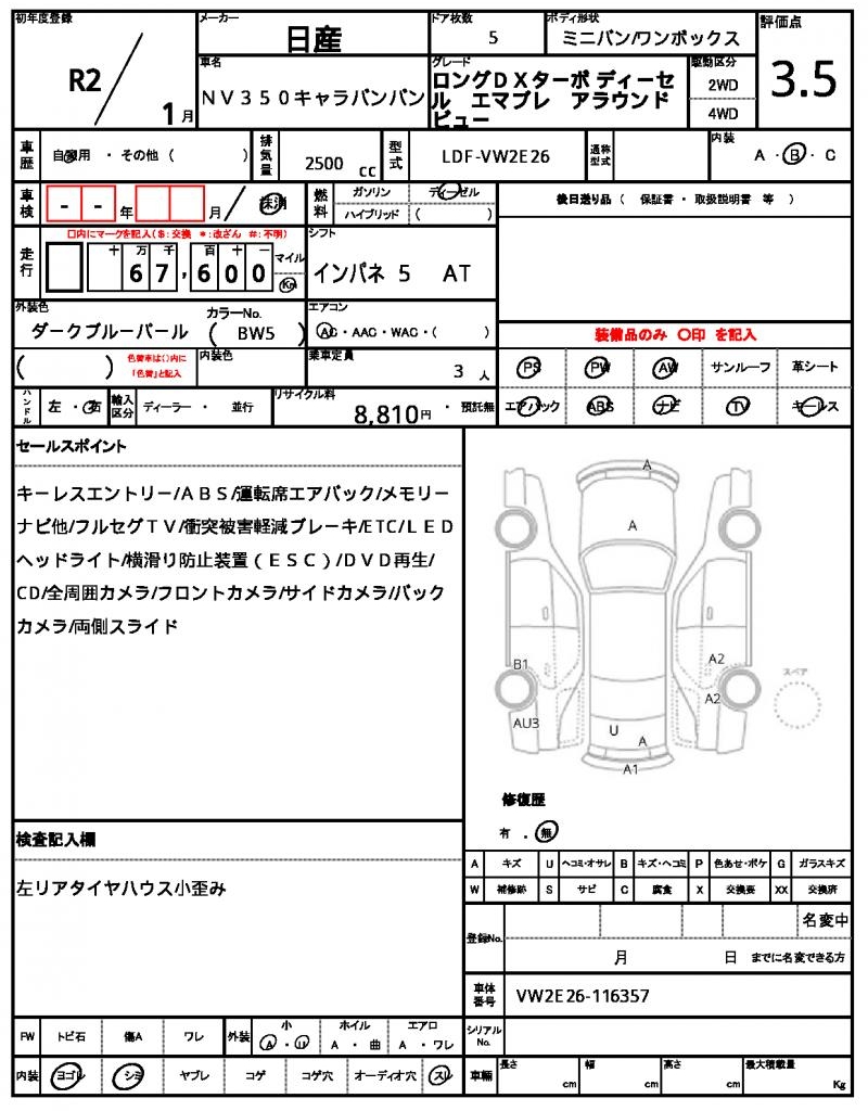 2020 NISSAN NV350CARAVAN VAN