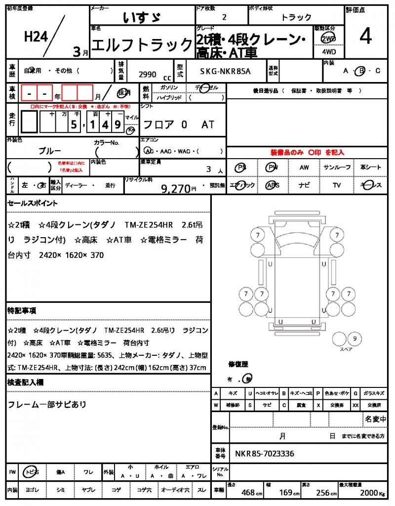 VIN/Serial No. NKR85-7023336