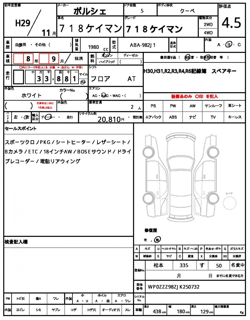 | VIN/Serial No. | WP0ZZZ98ZJK250732 |