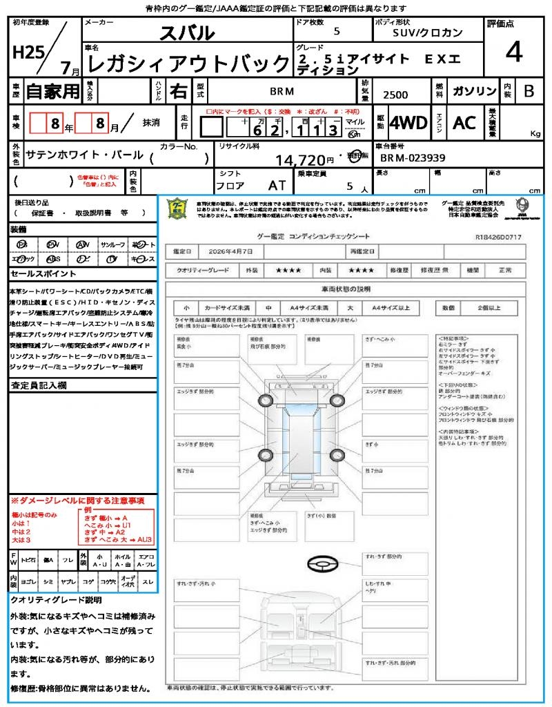 2013 SUBARU LEGACY OUTBACK
