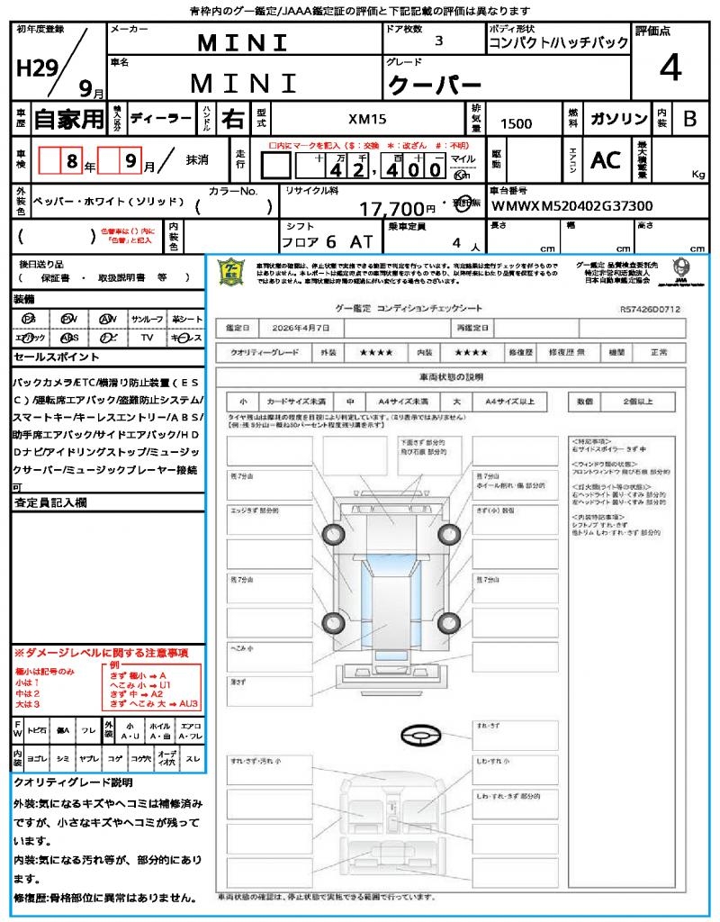 | VIN/Serial No. | WMWXM520402G37300 |