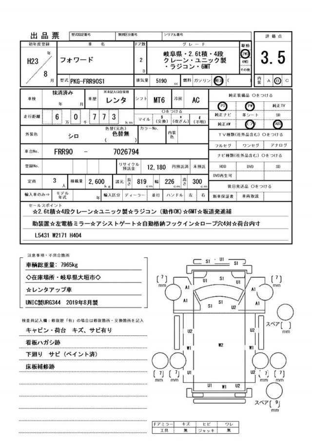 | VIN/Serial No. | FRR90--7026794 |