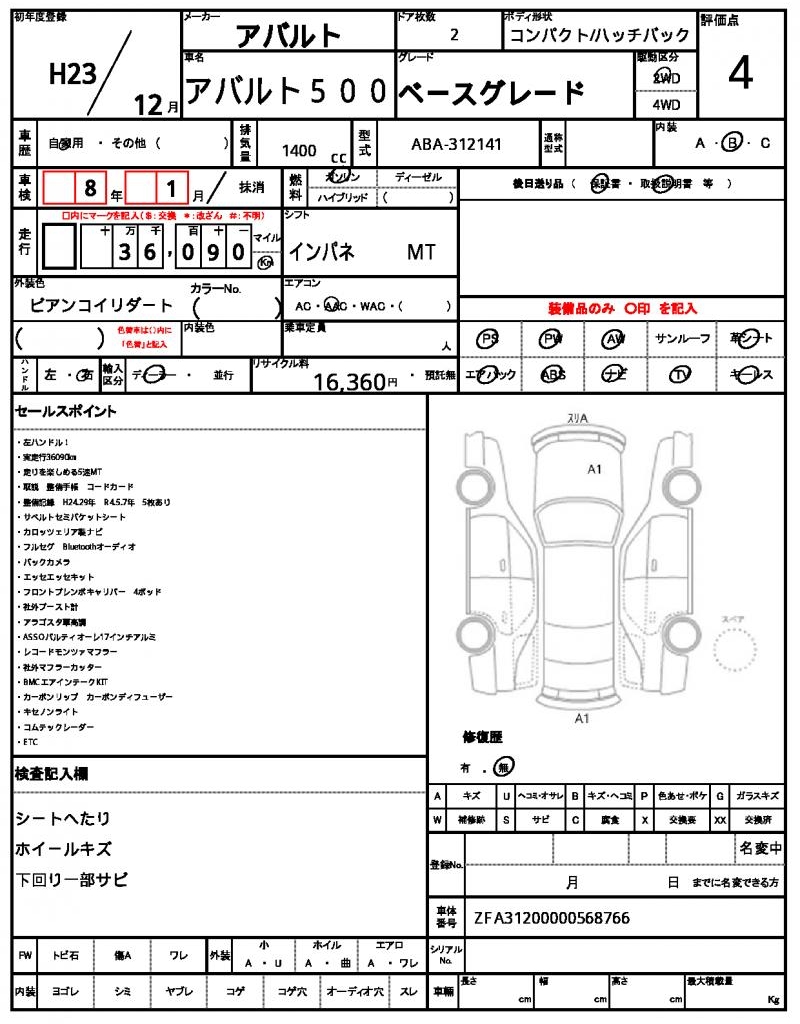 | VIN/Serial No. | ZFA31200000568766 |