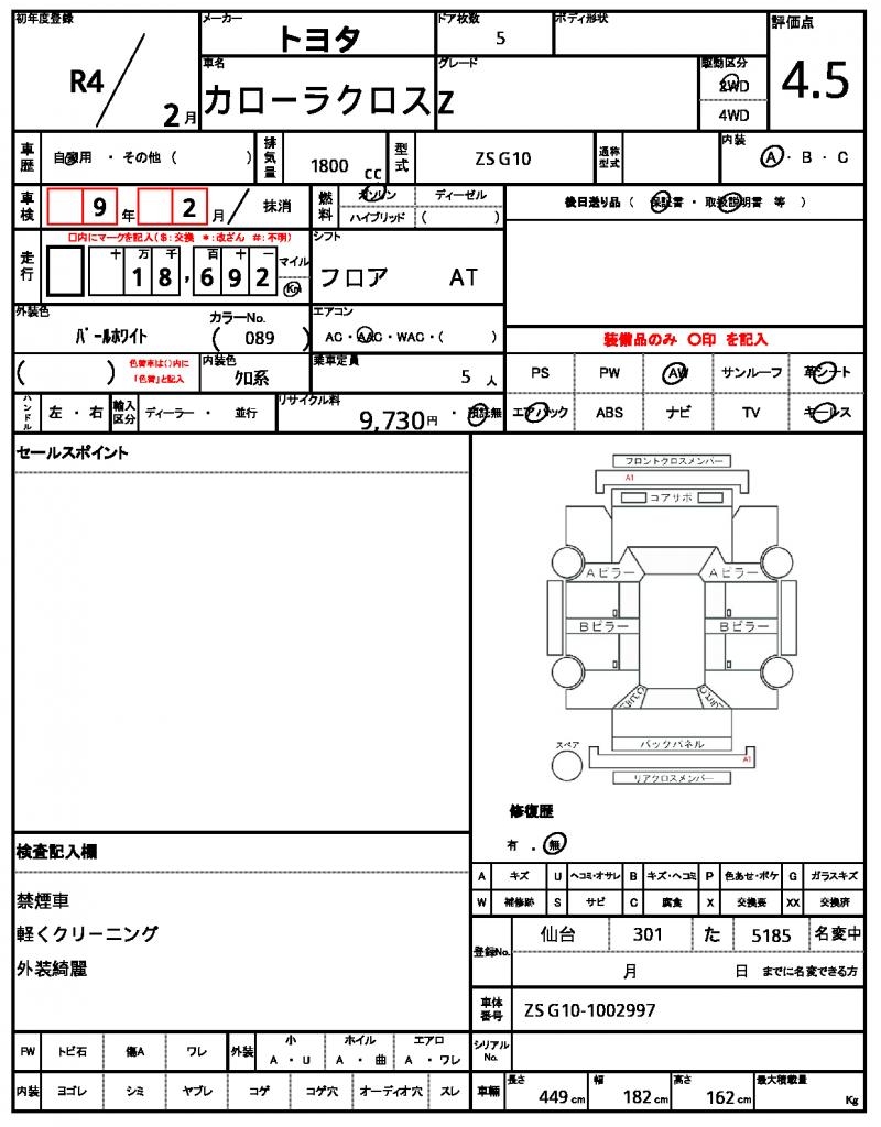 VIN/Serial No. ZSG10-1002997