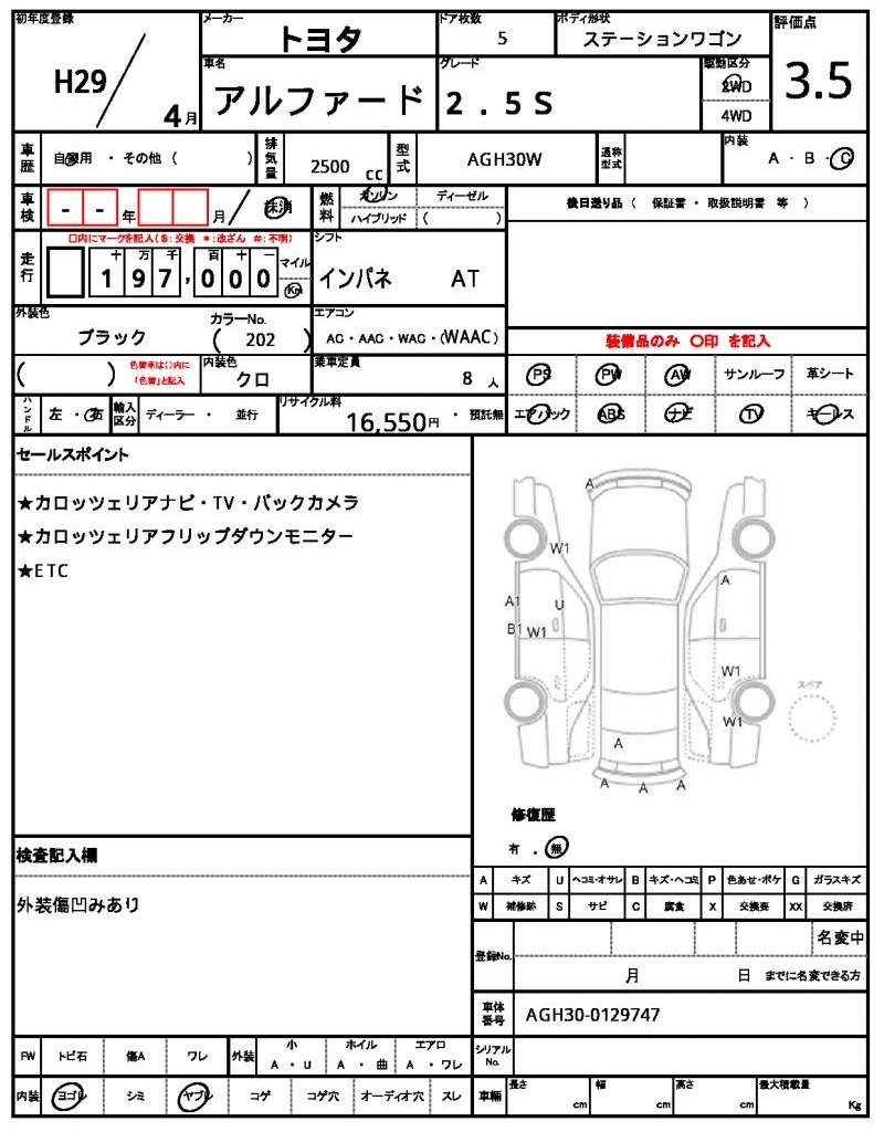| VIN/Serial No. | AGH30-0129747 |