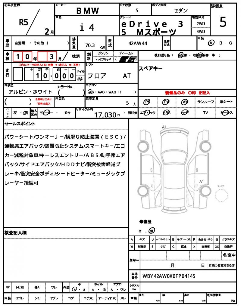 VIN/Serial No. WBY42AW0X0FP04145