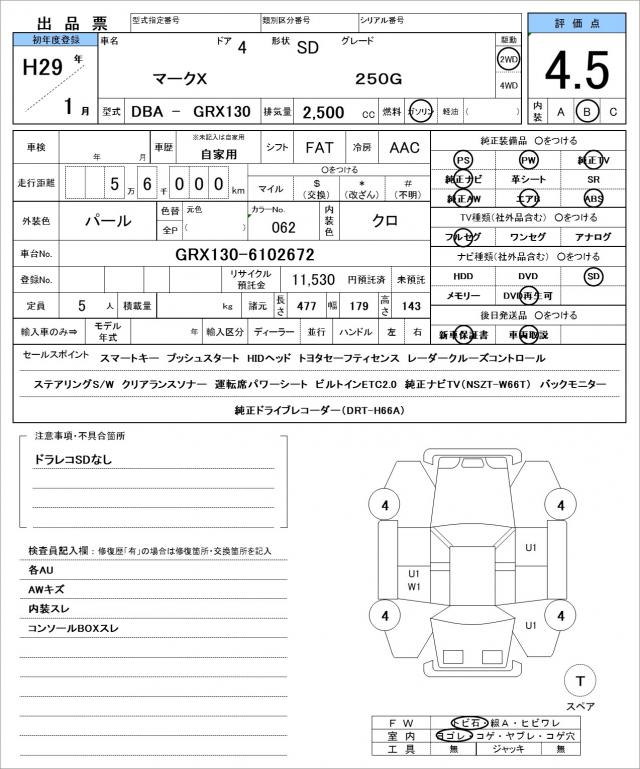 Model code DBA-GRX130