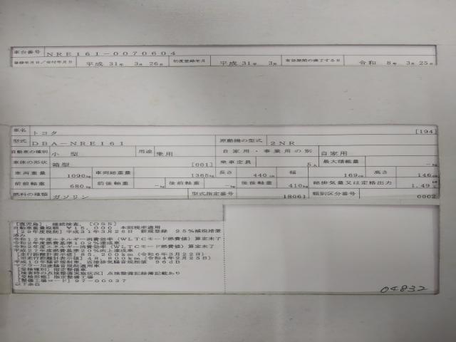 | VIN/Serial No. | NRE161-0070604 |