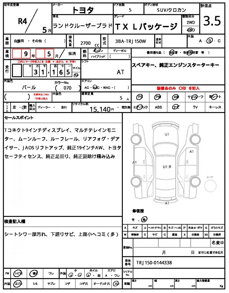 VIN/Serial No. TRJ150-0144338