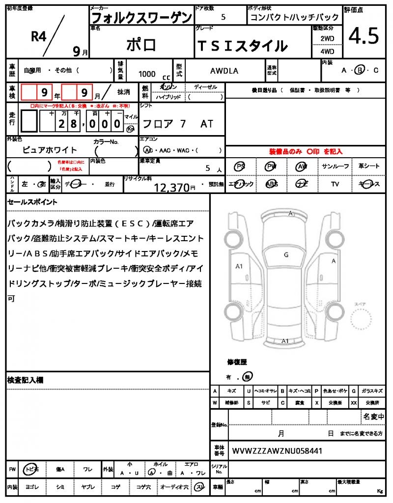VIN/Serial No. WVWZZZAWZNU058441